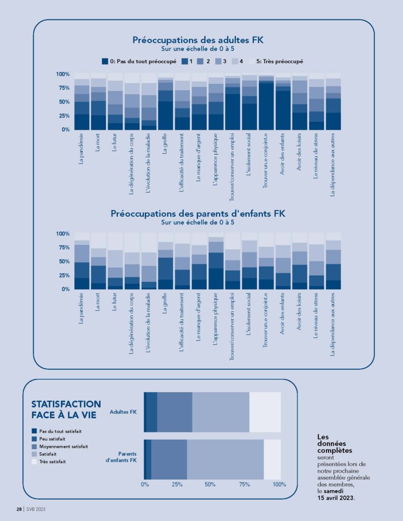 Lorsque l’on compare les degrés de préoccupations entre les adultes FK et les parents d’enfants FK, on remarque que ces derniers ont un degré d’inquiétude beaucoup plus élevé. Bien que certaines sources d’inquiétudes soient les mêmes dans les deux catégories, il est à noter que les parents s’inquiètent beaucoup plus que les adultes pour des questions de vie quotidienne. Il serait intéressant de pousser les analyses et réflexions plus loin, mais aussi de prendre en compte un possible besoin d’information et de soutien chez eux.