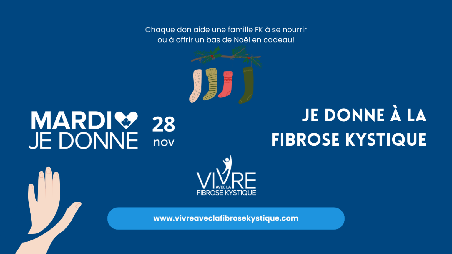 Participez à Mardi Je Donne 2023 et aidez à offrir des bas de Noël et de l’aide alimentaire aux enfants et familles vivant avec la fibrose kystique partout au Québec.